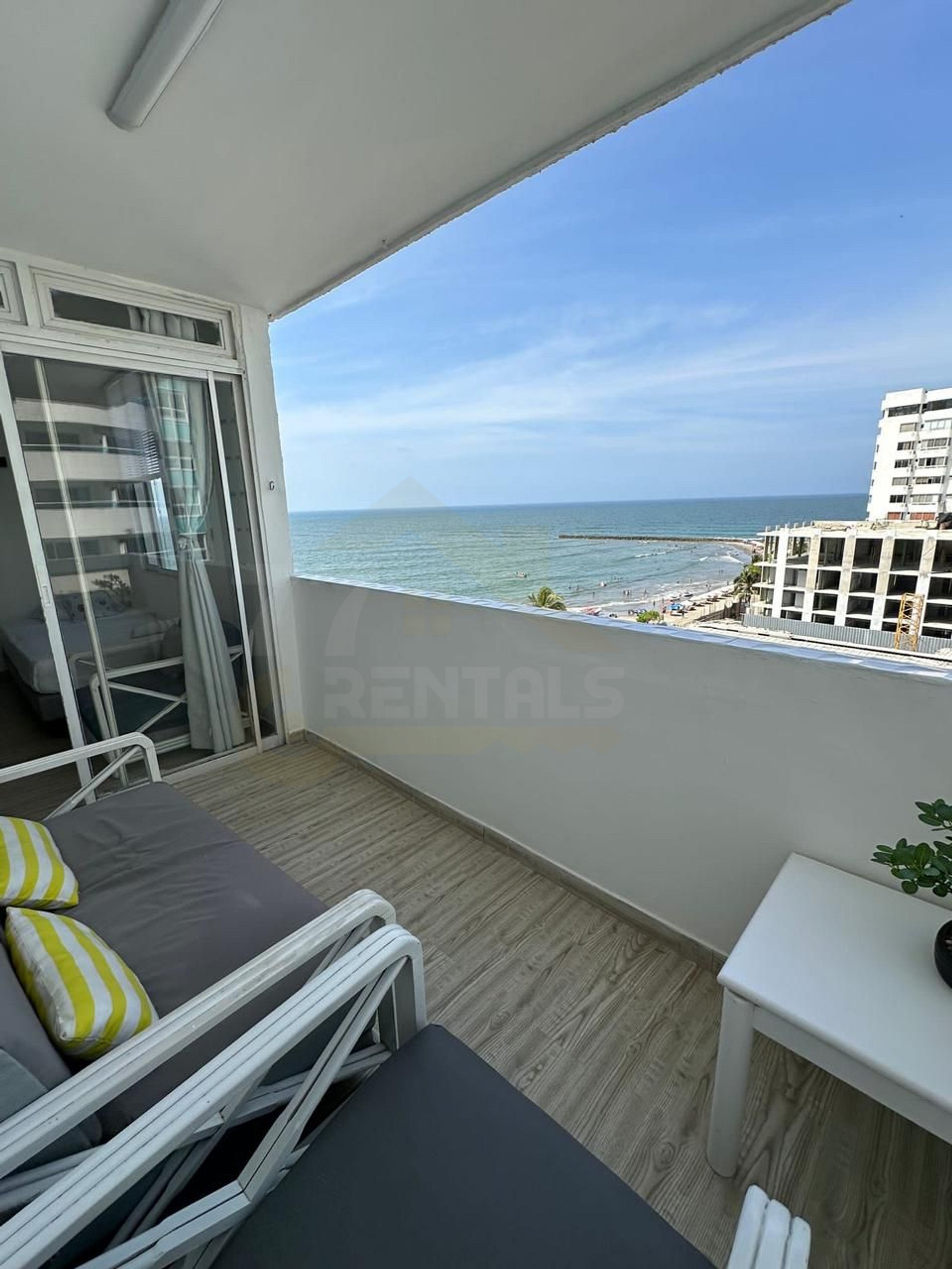 El apartamento se encuentra en un piso alto y ofrece una hermosa vista al mar desde el balcón, perfecta para disfrutar del atardecer con una taza de café o una copa de vino. Cuenta con aire acondicionado, WiFi, cocina totalmente equipada, nevera, microondas, cafetera y todo lo necesario para una estadía confortable, tanto para estancias cortas como largas.